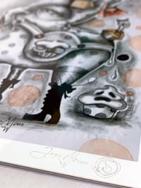 Limtied Edition of 5 giclee's on archival fine art paper. Each print is protected in a poly bag and comes with certificate of authenticity. Full Print Size is 8.5" x 11" Each print is hand signed and numbered by the artist.