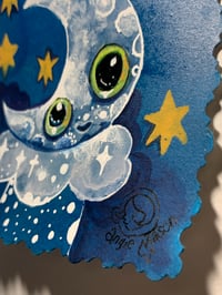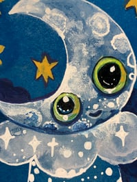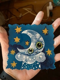 "Merry moonlight" mixed media painting on archival arches paper is approx 3.5X 3". Unframed but packaged with great care just for you! Part of the ArtBits™ Collection which are original works on paper conviently packaged to protect in a polybag and is original art at an affordable price.