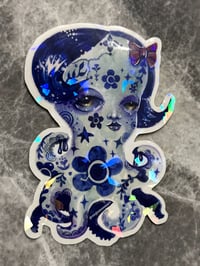 Regular size vinyl gloss Octopus Girl (Delft Series) 2024 Sticker with shimmer effect!
